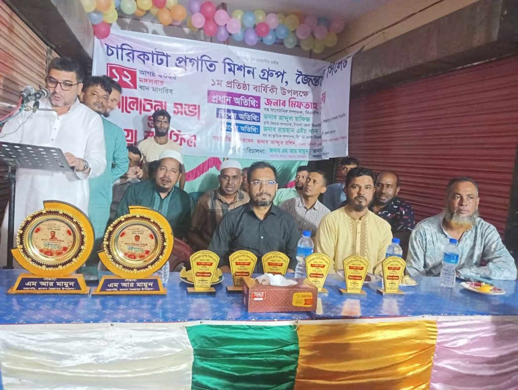 সিলেটের জৈন্তাপুরে চারিকাটা প্রগতি মিশন গ্রুপের ১ম প্রতিষ্ঠাবার্ষিকী উপলক্ষে আলোচনা সভা ও দোয়া মাহফিল অনুষ্ঠিত হয়েছে। মঙ্গলবার (১২ আগস্ট) রাত সাড়ে ৮টায় চারিকাটায় এ আয়োজন করা হয়।