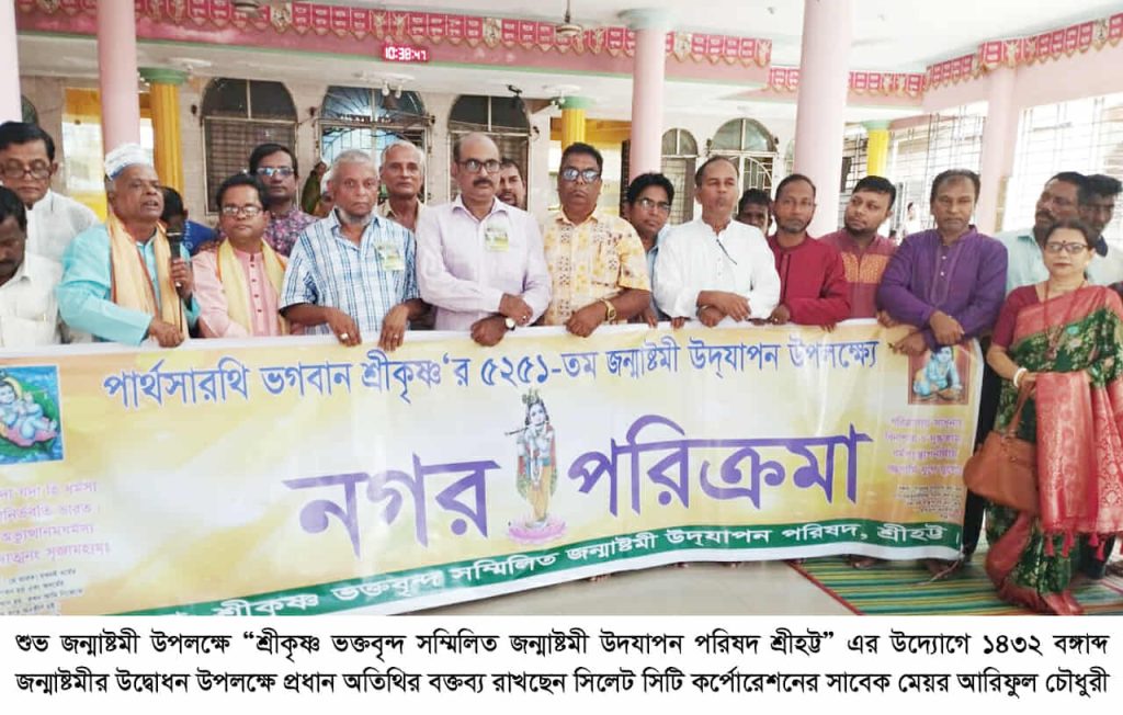 শনিবার (১৬ আগস্ট ২০২৫) সকালে নগরীর মীরাবাজারস্থ শ্রীশ্রী বলরাম জিউর আখড়ায় শুভ জন্মাষ্টমী ১৪৩২ বঙ্গাব্দ উপলক্ষে শ্রীকৃষ্ণ ভক্তবৃন্দ সম্মিলিত জন্মাষ্টমী উদযাপন পরিষদ শ্রীহট্ট এর উদ্যোগে জন্মাষ্টমীর উদ্বোধন উপলক্ষে প্রধান অতিথির বক্তব্যে তিনি উপরোক্ত কথাগুলো বলেন।