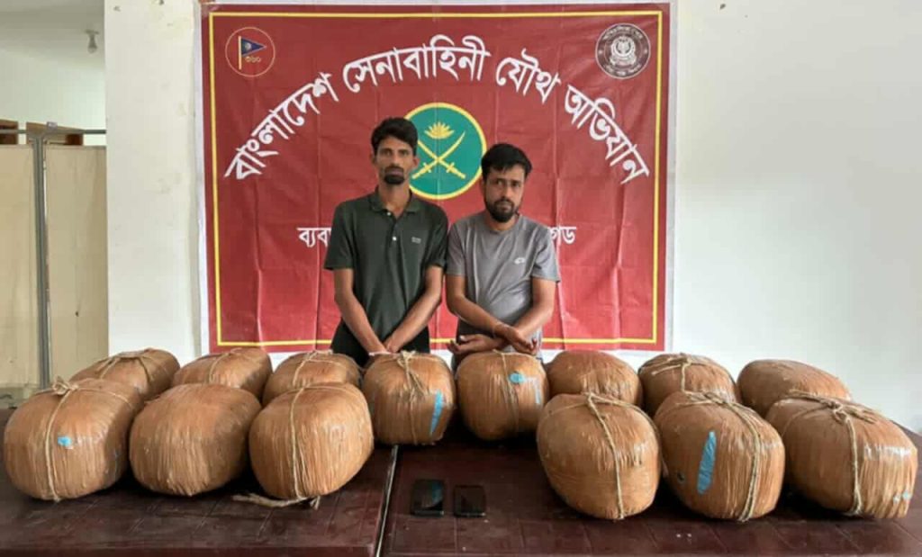 মাদকসেবীরা হলেন- হবিগঞ্জের চুনারুঘাট উপজেলার চাঁদপুর গ্রামের মৃত প্রিয়ন্তা সাঁওতালের ছেলে মনতুষ সাঁওতাল (৩০) এবং সুরেন্দ্র মালির ছেলে সুজন মালি (৩৫)। অভিযানে ৫৬ কেজি গাঁজা, একটি দেড় টনের ক্যাভার্ড ভ্যান, পাঁচটি মোবাইল ফোন ও তিন হাজার ৫৫০ টাকা জব্দ করা হয়। পরে আটক ব্যক্তিদের চুনারুঘাট থানায় হস্তান্তর করা হয়। তাদের বিরুদ্ধে মাদকদ্রব্য নিয়ন্ত্রণ আইনে মামলা প্রক্রিয়াধীন রয়েছে।