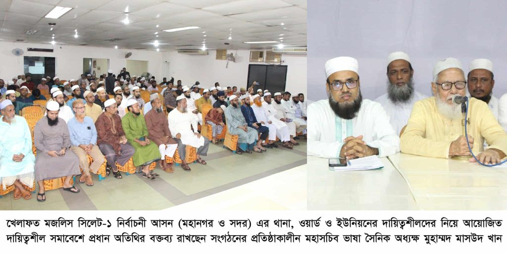খেলাফত মজলিস সিলেট ১ নির্বাচনী আসন (মহানগর ও সদর) এর থানা, ওয়ার্ড ও ইউনিয়নের দায়িত্বশীলদের নিয়ে আয়োজিত দায়িত্বশীল সমাবেশে সংগঠনের প্রতিষ্ঠাকালীন মহাসচিব ভাষা সৈনিক অধ্যক্ষ মুহাম্মদ মাসউদ খান বলেছেন, “ফ্যাসিস্ট পরবর্তী সময়ে সর্বোচ্চ অগ্রাধিকার হচ্ছে সকল অনিয়ম, বৈষম্য দুর করে দেশকে ইনসাফ ও শান্তির দেশ রুপে গড়ে তোলা। দুর্নীতিমুক্ত সৎ, যোগ্য ও দেশপ্রেমিক নেতৃত্ব বাছাই করে তাদের হাতে দেশ পরিচালনার দায়িত্ব দিতে হবে।