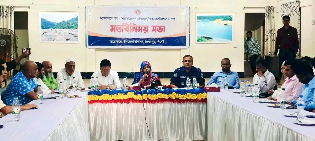 রবিবার(২৪ আগস্ট) বিকেলে জৈন্তাপুর উপজেলা পরিষদ হলরুমে উপজেলা প্রশাসন আয়োজিত অবৈধ বালু পাথর উত্তোলন বন্দে অংশীজনের সাথে অনুষ্ঠিত মতবিনিময় সভায় তিনি এসব কথা বলেন।