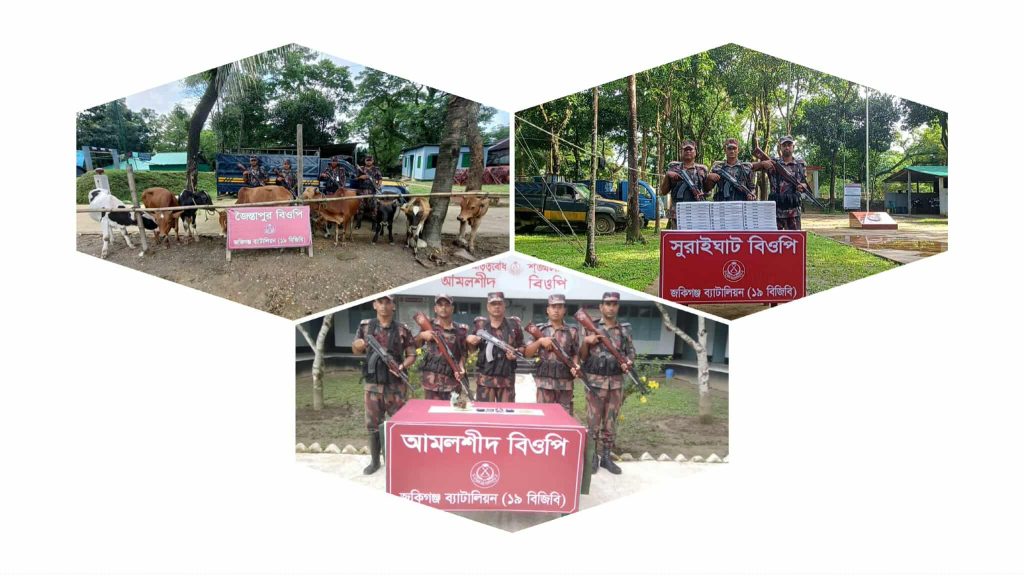 একই দিনে, আমলশীদ বিওপি’র টহল দল জকিগঞ্জ উপজেলার শাহেদাবাদ কামালগঞ্জ এলাকায় সীমান্তের শূন্য লাইন থেকে ৫০০ গজ বাংলাদেশের অভ্যন্তরে অভিযান পরিচালনা করে ৯৯০ পিস ভারতীয় ইয়াবা ও ১৫০ গ্রাম ভারতীয় গাঁজা জব্দ করে। এর আনুমানিক সিজার মূল্য ২,৯৭,৫২৫ টাকা।