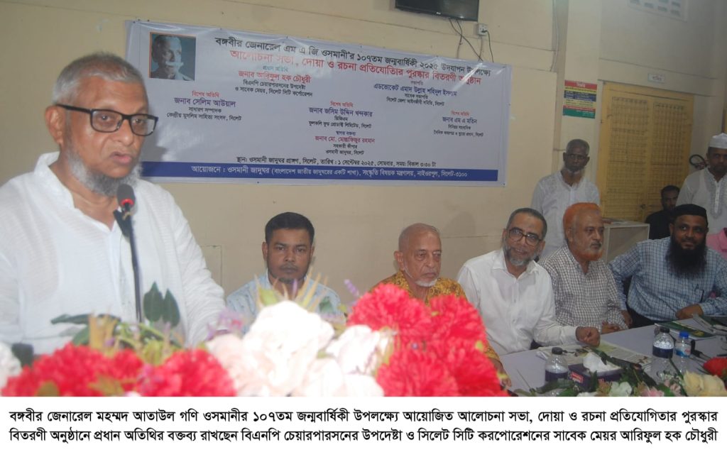 বিএনপি চেয়ারপারসনের উপদেষ্টা ও সিলেট সিটি করপোরেশনের সাবেক মেয়র আরিফুল হক চৌধুরী বলেছেন, বাংলাদেশের স্বাধীনতার ইতিহাসে এক অবিস্মরণীয় নাম বঙ্গবীর জেনারেল মহম্মদ আতাউল গণি ওসমানী। মহান মুক্তিযুদ্ধের সর্বাধিনায়ক হিসেবে তাঁর নেতৃত্ব ও দূরদর্শিতার কারণেই মুক্তিকামী জাতি সংগঠিত হয়ে বিজয়ের পথে এগিয়ে যায়। ১৯১৮ সালের ১লা সেপ্টেম্বর সিলেটের দিরাইয়ে জন্মগ্রহণ করেন তিনি। ব্রিটিশ সেনাবাহিনী ও পাকিস্তান সেনাবাহিনীতে দীর্ঘ কর্মজীবন শেষে জাতির সংকটময় মুহূর্তে তিনি হয়ে ওঠেন স্বাধীনতার সংগ্রামের পথপ্রদর্শক। মুক্তিযুদ্ধের সময় তাঁর সাহসী সিদ্ধান্ত, নেতৃত্ব ও সংগঠক দক্ষতা মুক্তিকামী বাঙালিকে সঠিক পথে এগিয়ে নিয়ে যায়।