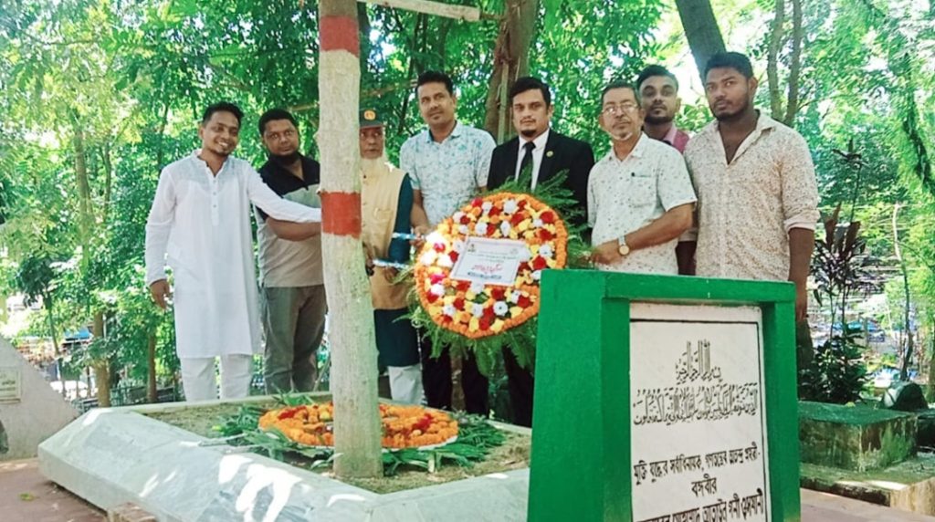 সোমবার (১লা সেপ্টেম্বর) দুপুর ১২ ঘটিকায় জাতীয় জনতা পার্টির চেয়ারম্যান প্রয়াত এডভোকেট নুরুল ইসলাম খানের ছেলে এডভোকেট তাহমিনুল খানের নেতৃত্বে যরত শাহজালাল মাজারে বঙ্গবীর ওসমানীর সমাধিতে পুষ্পস্তবক অর্পণ, মাজার জিয়ারত ও করে দলটি সিলেট জেলা ও মহানগর কমিটির নেতৃবৃন্দ।