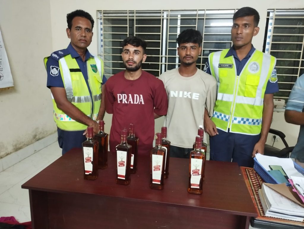 পরে তাদের হেফাজত থেকে দুইটি কালো ব্যাগ উদ্ধার করা হয়। প্রতিটি ব্যাগে ৪টি করে মোট ৮ বোতল অবৈধ ভারতীয় হুইস্কি পাওয়া যায়। প্রতিটি বোতলের গায়ে ৭৫০ মিলিলিটার লেখা ছিল। উদ্ধারকৃত মদ জব্দ করে পুলিশ আসামিদের আটক করে থানায় নিয়ে আসে।