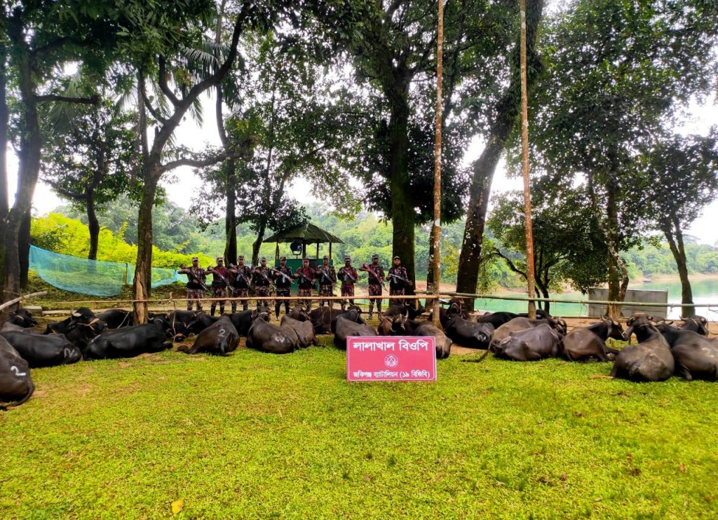 বিজিবি জানায়, আজ শনিবার (০৬ সেপ্টেম্বর) সকালে গোপন সংবাদের ভিত্তিতে সিলেট সেক্টরের অধীনস্থ জকিগঞ্জ ব্যাটালিয়ন (১৯ বিজিবি) এর লালাখাল বিওপি’র একটি আভিযানিক টহল দল জৈন্তাপুর উপজেলার সারিঘাট এলাকায় বিশেষ অভিযান পরিচালনা করে। এসময় সীমান্তের শূন্য রেখা হতে প্রায় ৩.৫ কিলোমিটার বাংলাদেশের অভ্যন্তরে মালিকবিহীন অবস্থায় ভারতীয় ৫৩টি মহিষ আটক করা হয়। এর সিজারমূল্য ধরা হয়েছে ৯৯ লাখ ৪০ হাজার টাকা।