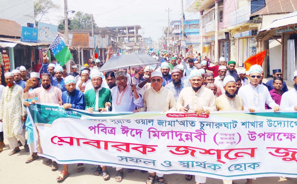 :চুনারুঘাট (হবিগঞ্জ) প্রতিনিধি:: আহলে সুন্নাত ওয়াল জমা’আত চুনারুঘাট উপজেলা শাখার উদ্যোগে পবিত্র জশনে জুলুশে ঈদে মিলাদুন্নবী (দ.) অনুষ্ঠিত। প্রতি বছরের ন্যায় (৬ সেপ্টেম্বর) ১২‘ই রবিউল আওয়াল শনিবার সকাল ৯ টা থেকে চুনারুঘাট উপজেলা পরিষদ মাঠে উপজেলার ১০টি ইউনিয়ন ও পৌর সভার বিভিন্ন স্থান থেকে হাজার হাজার নবী প্রেমিক সুন্নী জনগণের উপস্থিতিতে পৌর শহর জনসমুদ্রে রুপ নেয়।