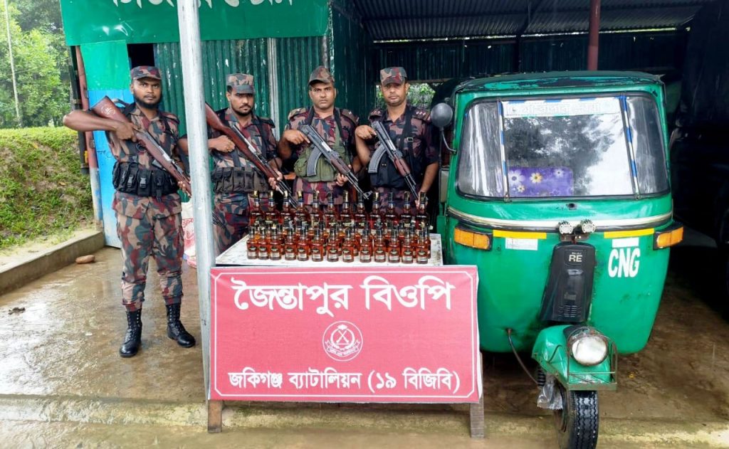 বিজিবি সূত্রে জানা যায়, ১৪ সেপ্টেম্বর রাত ১০টা-এ জৈন্তাপুর উপজেলার ফুলবাড়ী এলাকায় জৈন্তাপুর বিওপি’র আভিযানিক টহল দল গোপন সংবাদের ভিত্তিতে একটি অভিযান পরিচালনা করে। উক্ত অভিযানে মালিকবিহীন অবস্থায় ভারতীয় মদ ৫২ বোতল এবং মাদক পরিবহণে ব্যবহৃত ১টি সিএনজি জব্দ করা হয়। এই মালামালের সিজারমূল্য দাঁড়িয়েছে ৪,৭৮,০০০ টাকা।