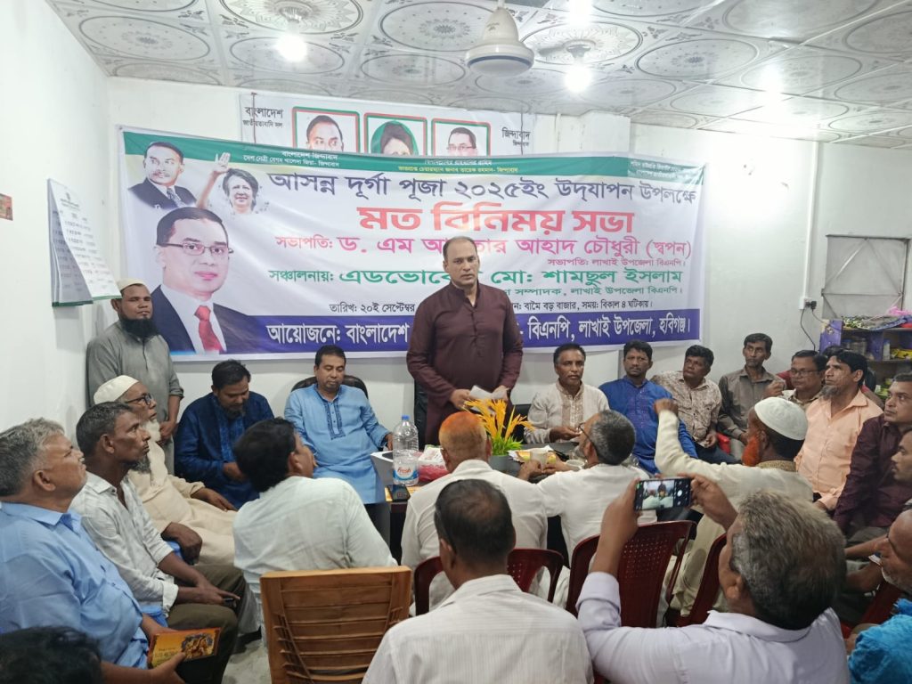 দুর্গাপূজা উপলক্ষে লাখাইয়ে সনাতন ধর্মাবলম্বী নেতাদের সাথে বিএনপির মত বিনিময় সভা