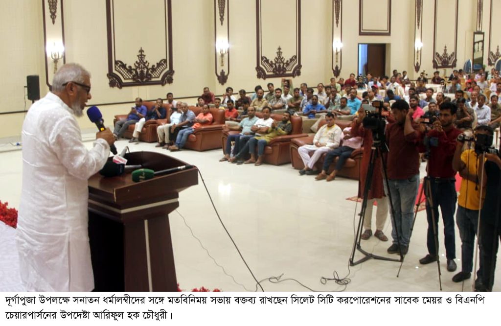 তিনি গতকাল শনিবার রাতে সিলেট নগরে শারদীয় দুর্গোৎসব উপলক্ষে নিজের উদ্যোগে সনাতন ধর্মালম্বীদের সাথে মতবিনিময় সভায় এইসব কথা বলেন। এই সময় সাবেক মেয়র সনাতন ধর্মালম্বীদের সবচেয়ে বড় উৎসব দূর্গাপুজা উপলক্ষে নিজ তহবিল অনুদান প্রদান করেন।