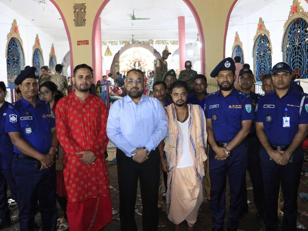ডিআইজি সনাতন ধর্মাবলম্বী ও মণ্ডপ কমিটির নেতৃবৃন্দের সঙ্গে শুভেচ্ছা বিনিময় করেন এবং পূজা মণ্ডপগুলোর নিরাপত্তা ব্যবস্থা তদারকি করেন। তিনি সার্বিক আইন-শৃঙ্খলা ও নিরাপত্তা পরিস্থিতি পর্যবেক্ষণ করে প্রয়োজনীয় দিকনির্দেশনা প্রদান করেন।