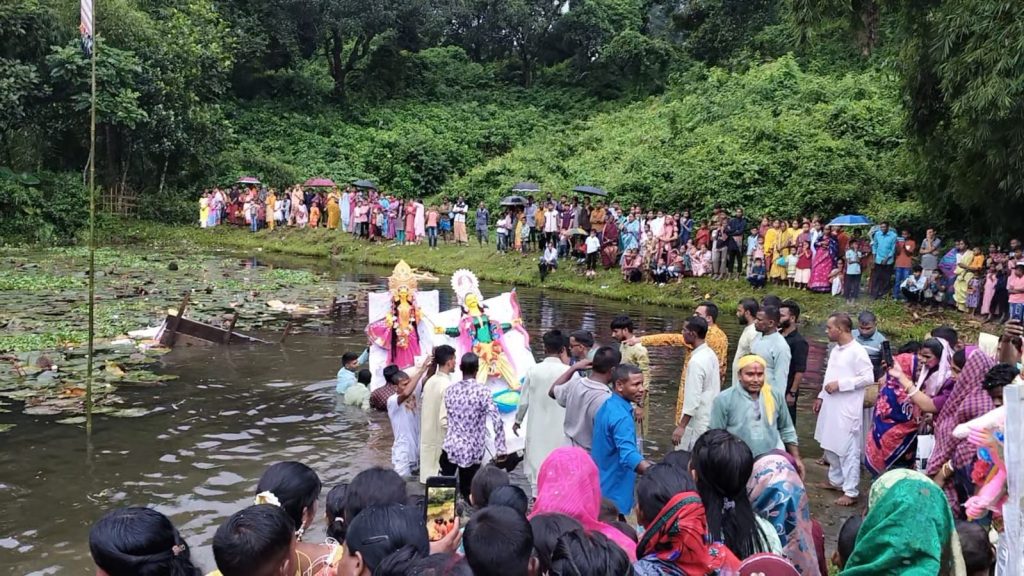 জৈন্তাপুরে প্রতিমা বিসর্জনের মধ্য দিয়ে শেষ হলো দুর্গোৎসব