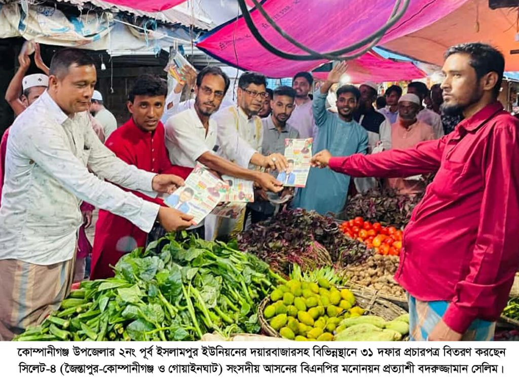 কোম্পানীগঞ্জ উপজেলার ২নং পূর্ব ইসলামপুর ইউনিয়নের দয়ারবাজারসহ বিভিন্নস্থানে ৩১ দফার প্রচারপত্র বিতরণকালে একথাগুলো বলেন। তিনি বলেন, বিএনপি সর্বদা মানুষের সেবায় কাজ করে যাচ্ছে। বিএনপির ভারপ্রাপ্ত চেয়ারম্যান তারেক রহমানের নেতৃত্বে আগামী জাতীয় সংসদ নির্বাচনে ধানের শীষকে বিজয়ী করতে ঐক্যবদ্ধভাবে কাজ করতে হবে।