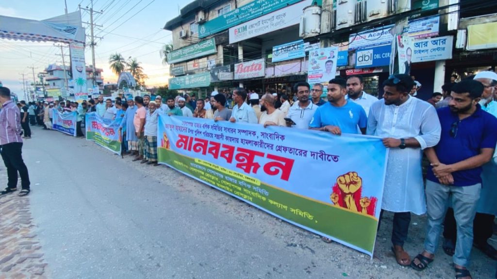 এসময় বক্তারা বলেন,’সাংবাদিক আব্দুল আহাদ সমাজের সর্বজন শ্রদ্ধেয় ব্যাক্তিত্ব। তার উপর পরিকল্পিতভাবে পুলিশ পরিচয়ে ‘মব’ সৃষ্টি করে সন্ত্রাসী কায়দায় প্রাণে হত্যার উদ্দেশ্যে হামলা চালানো হয়। হামলার সাথে জড়িত সেলিম হাসান কাওছারসহ জড়িতদের দ্রুত সময়ের মধ্যে আইনের আওতায় এনে সর্বোচ্চ শাস্তির ব্যবস্থা করতে হবে।’