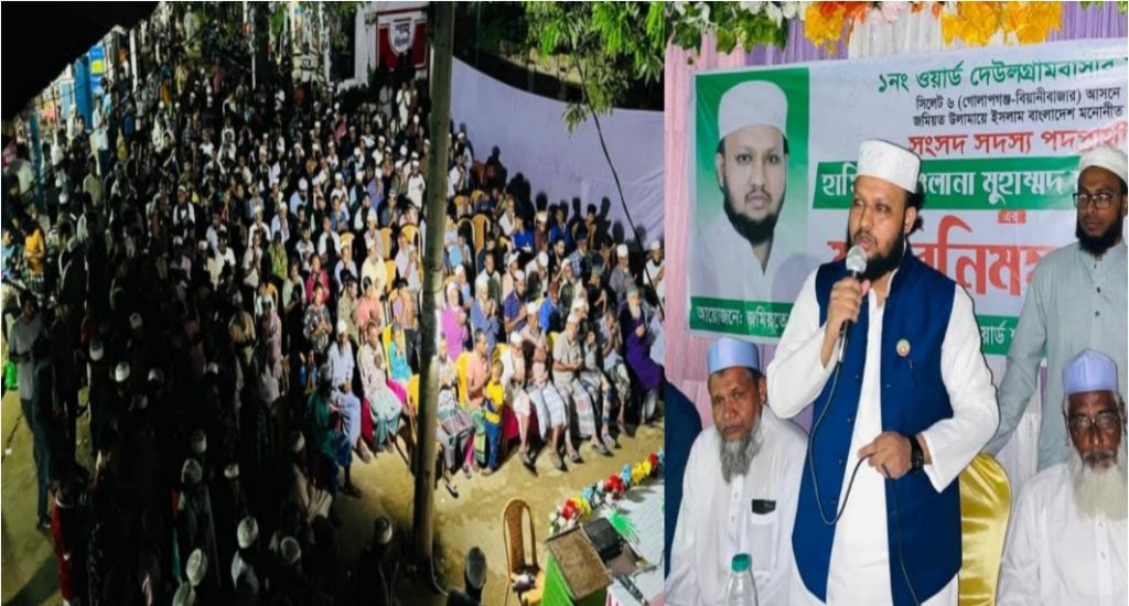 বিয়ানীবাজার উপজেলার কুড়ারবাজার ইউনিয়নের ১নং ওয়ার্ড দেউলগ্রামবাসীর সাথে জমিয়তে উলামায়ে ইসলাম বাংলাদেশ মনোনীত সিলেট-৬ (গোলাপগঞ্জ-বিয়ানীবাজার) আসনের সংসদ সদস্য পদপ্রার্থী হাফিজ মাওলানা মুহাম্মদ ফখরুল ইসলাম-এর এক মতবিনিময় সভা অনুষ্ঠিত হয়েছে।