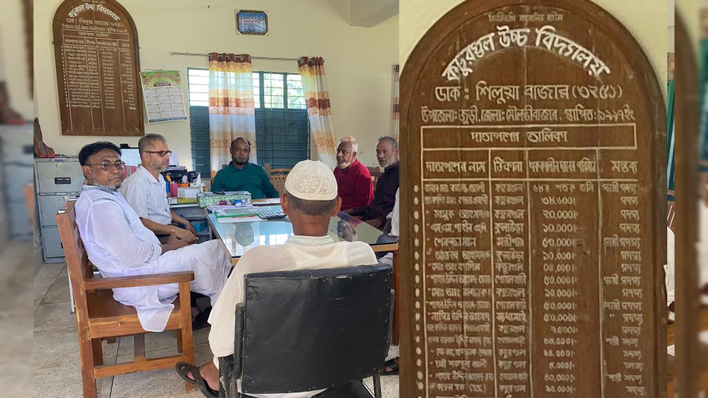 এক পর্যায়ে বিদ্যালয়ের প্রধান শিক্ষকের সাথে আলোচনার সময় উনার নিজের মুখেই বলে উঠলেন যে হে আপনি দান করেছিলেন এই ভবনটি কিন্তু দাতা সদস্য বোর্ডে আপনার নাম না দেখে আমরাও হতবাক।