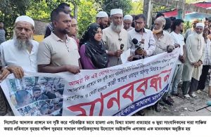 মানববন্ধনে এসময় অন্যান্যের মধ্যে বক্তব্য রাখেন হাজি ফারুক আহমদ, এমদাদ হোসেন, হাজি ফখরুল ইসলাম, শাহজাহান মিয়া, মো. সুহেদ আলী, হিরা মিয়া, ফয়জুর রহমান, রফিক মিয়া, জামাল মিয়া, রমিন উল্লাহ, শফিউল ইসলাম।