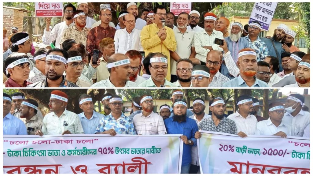 দাবি আদায় না হলে রাজপথের আন্দোলন চলবেই–সাতক্ষীরার কলারোয়ায় মানববন্ধনে শিক্ষক নেতৃবৃন্দ