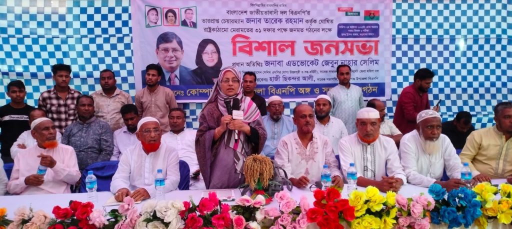 কোম্পানীগঞ্জ উপজেলা প্রতিনিধি::বাংলাদেশ জাতীয়তাবাদী দল বিএনপির ভারপ্রাপ্ত চেয়ারম্যান তারেক রহমান কর্তৃক ঘোষিত রাষ্ট্র কাঠামো মেরামতের ৩১ দফার জনমত সৃষ্টি করার লক্ষে কোম্পানীগঞ্জ উপজেলা বিএনপি ও অঙ্গ সহযোগী সংগঠনের উদ্যোগে এক বিশাল জনসভা অনুষ্ঠিত হয়।
