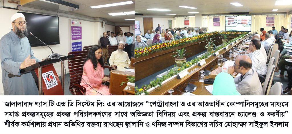 শনিবার (২৫ অক্টোবর) নগরীর মেন্দিবাগস্থ জালালাবাদ গ্যাস অফিসের কনফারেন্স রুমে জালালাবাদ গ্যাস টি এন্ড ডি সিস্টেম লি: এর আয়োজনে “পেট্রোবাংলা ও এর আওতাধীন কোম্পানিসমূহের মাধ্যমে সমাপ্ত প্রকল্পসমূহের প্রকল্প পরিচালকগণের সাথে অভিজ্ঞতা বিনিময় এবং প্রকল্প বাস্তবায়নে চ্যালেঞ্জ ও করণীয়” শীর্ষক কর্মশালায় প্রধান অতিথির বক্তব্যে তিনি উপরোক্ত কথাগুলো বলেন।