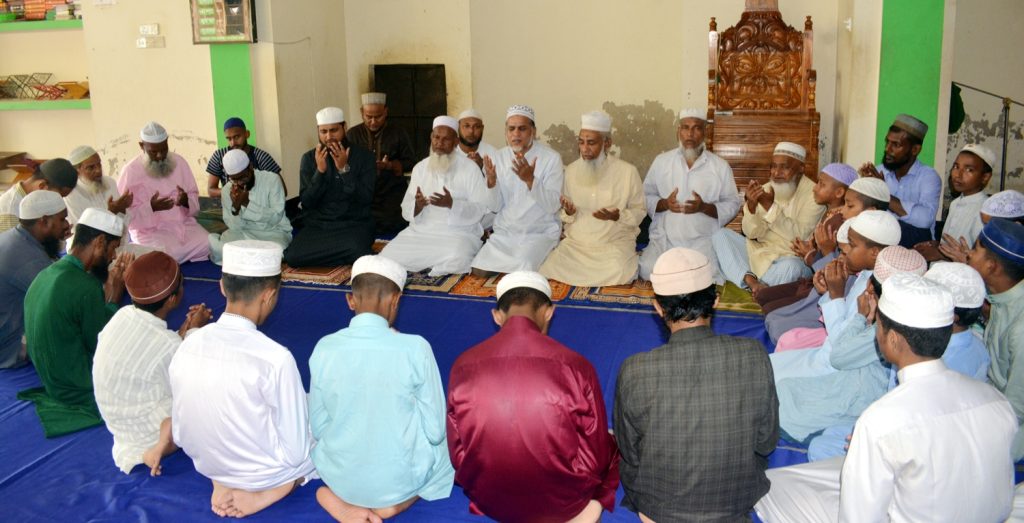 মরহুম সৈয়দ মোবারক আলী জামে মসজিদ এবং সৈয়দ মোঃ কাওছার আলী নুরানী হাফিজিয়া ও এতিমখানা মাদরাসার যৌথ উদ্যোগে ৯ম বার্ষিক ওয়াজ ও দোয়া মাহফিল উপলক্ষ্যে প্রস্তুতি সভায় মোনাজাত পরিচালনা করছেন মাদ্রাসাতুল আরাফাহ সিলেটের শিক্ষা সচিব হাফিজ মাওলানা উবায়দুল্লাহ