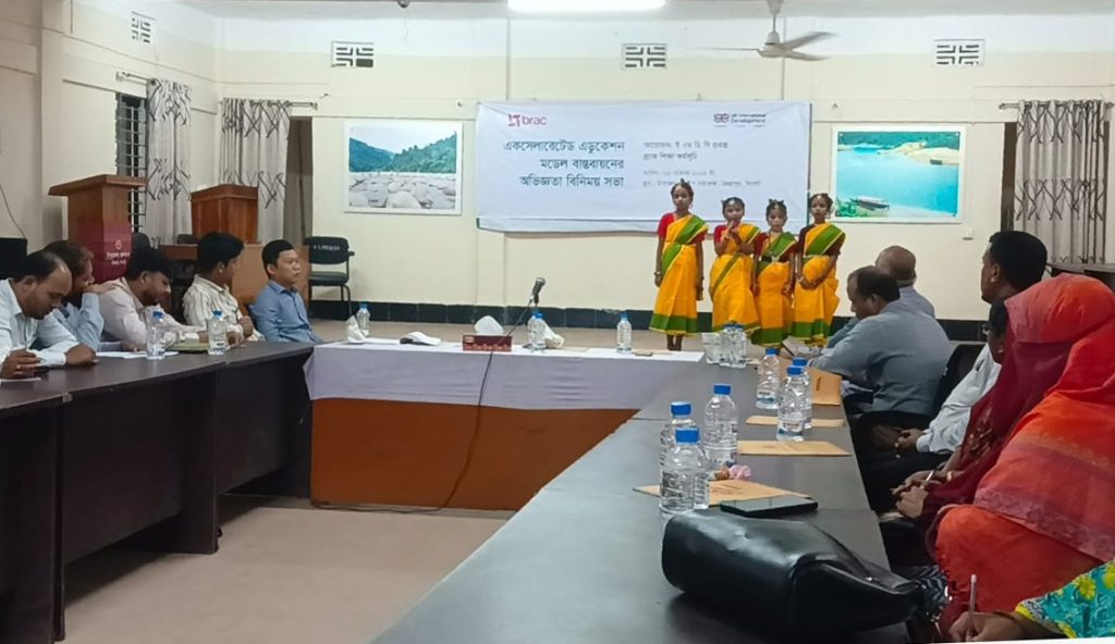 সভায় ব্র্যাক শিক্ষা কর্মসূচির উপজেলা ব্যবস্থাপক জহিরুল ইসলাম স্বাগত বক্তব্যে এক্সেলারেটেড এডুকেশন মডেলের উদ্দেশ্য ও সাফল্য তুলে ধরেন। তিনি বলেন, কোভিড-১৯ মহামারির সময় ১৮ মাস ধরে দেশের সব স্কুল বন্ধ থাকায় ঝরে পড়া শিক্ষার্থীর সংখ্যা আশঙ্কাজনকভাবে বৃদ্ধি পায়। এ পরিস্থিতিতে যুক্তরাজ্য সরকারের সহযোগিতায় ব্র্যাক শিক্ষা কর্মসূচি ইএমডিসি প্রকল্পের মাধ্যমে সুবিধাবঞ্চিত ও ঝরে পড়া শিক্ষার্থীদের জন্য ১০ মাস মেয়াদী এক্সেলারেটেড শিক্ষা মডেল চালু করে।