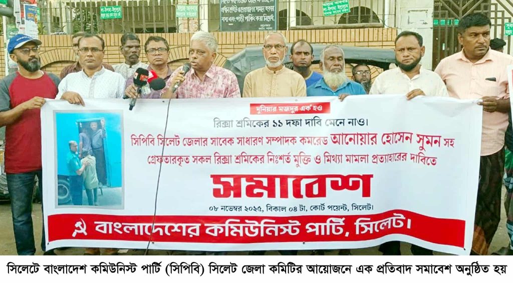 সিলেটে বাংলাদেশ কমিউনিস্ট পার্টি (সিপিবি) সিলেট জেলা কমিটির আয়োজনে শনিবার (৮ অক্টোবর) বিকেল ৪টায় এক প্রতিবাদ সমাবেশ অনুষ্ঠিত হয়।