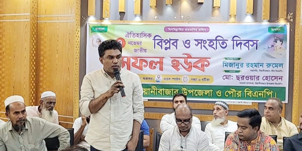 শনিবার (৭ নভেম্বর) ঐতিহাসিক জাতীয় বিপ্লব ও সংহতি দিবস উপলক্ষে বিয়ানীবাজার উপজেলা ও পৌর বিএনপি আয়োজিত আলোচনা সভায় বিএনপির বিভিন্ন পর্যায়ের নেতৃবৃন্দ এসব কথা বলেন।