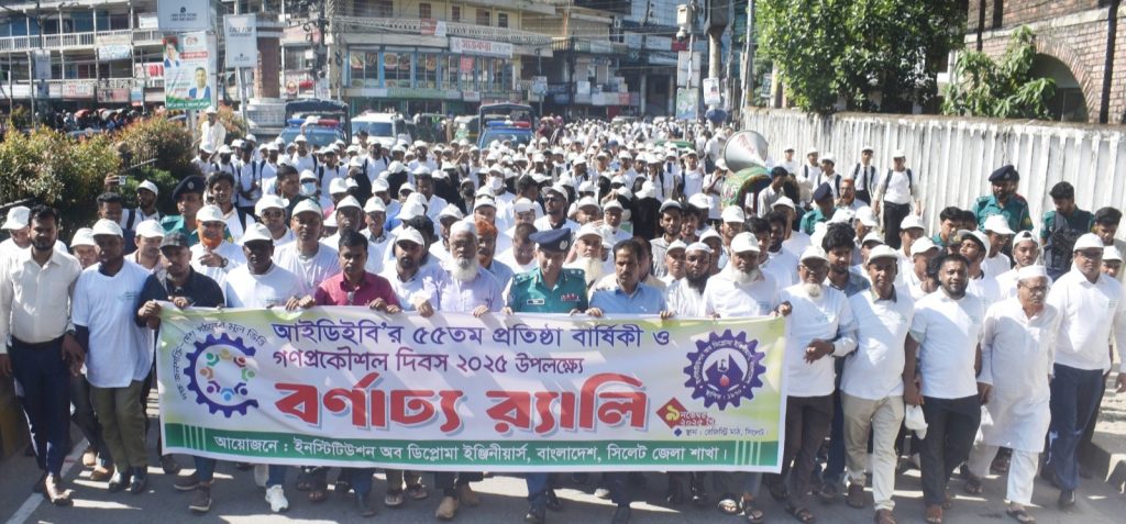 সিলেটে ইনস্টিটিউশন অব ডিপ্লোমা ইঞ্জিনীয়ার্স বাংলাদেশ (আইডিইবি)’র ৫৫তম প্রতিষ্ঠাবার্ষিকী ও গণপ্রকৌশল দিবস ২০২৫ পালন করা হয়েছে।