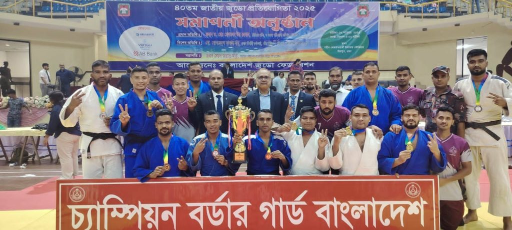 দেশের ক্রীড়াঙ্গনে বর্ডার গার্ড বাংলাদেশ (বিজিবি) এর আরেকটি গৌরবোজ্জ্বল অর্জন-৪০তম জাতীয় জুডো প্রতিযোগিতা ২০২৫-এ চ্যাম্পিয়ন হয়েছে বিজিবি জুডো দল।