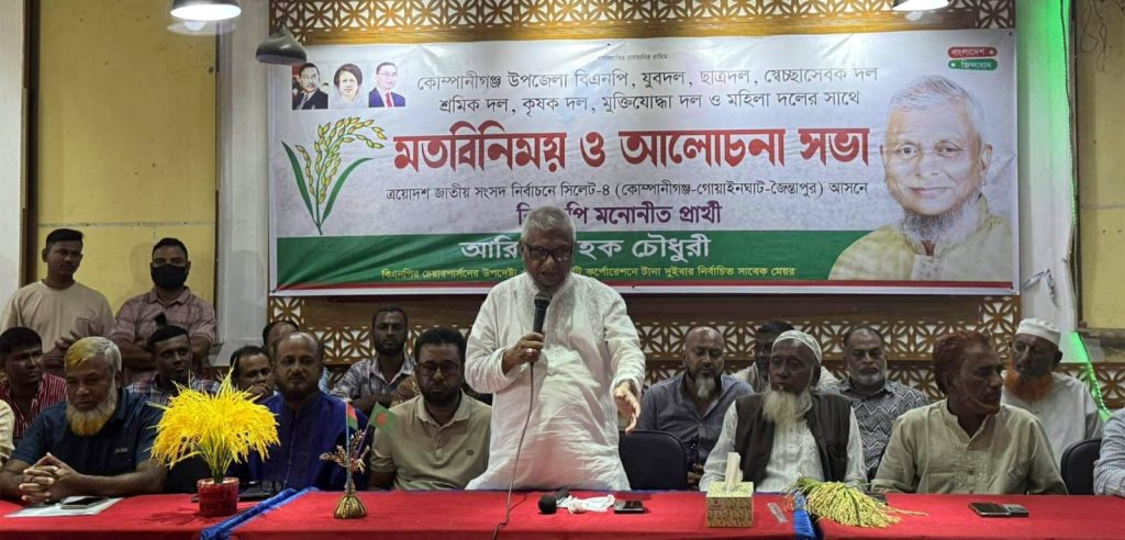 সভায় স্বাগত বক্তব্য রাখেন প্রধান অতিথি সিলেট-৪ (কোম্পানীগঞ্জ-গোয়াইনঘাট-জৈন্তাপুর) আসনের বিএনপি মনোনীত এমপি পদপ্রার্থী আরিফুল হক চৌধুরী।
