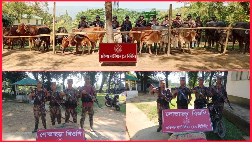 বিজিবির জকিগঞ্জ ব্যাটালিয়ন (১৯ বিজিবি) থেকে পাঠানো প্রেস বিজ্ঞপ্তিতে জানানো হয়, সোমবার (১০ নভেম্বর) ভোররাতে গোপন সংবাদের ভিত্তিতে ব্যাটালিয়নের একটি বিশেষ টহলদল জৈন্তাপুর উপজেলার ফেরিঘাট এলাকায় অভিযান চালায়। সীমান্তের শূন্য রেখা থেকে প্রায় তিন কিলোমিটার ভেতরে চালানো ওই অভিযানে মালিকবিহীন অবস্থায় ১৫টি ভারতীয় গরু, ৪টি মহিষ ও একটি পিকআপ জব্দ করা হয়। এসবের আনুমানিক বাজারমূল্য প্রায় ৩৪ লাখ টাকা।