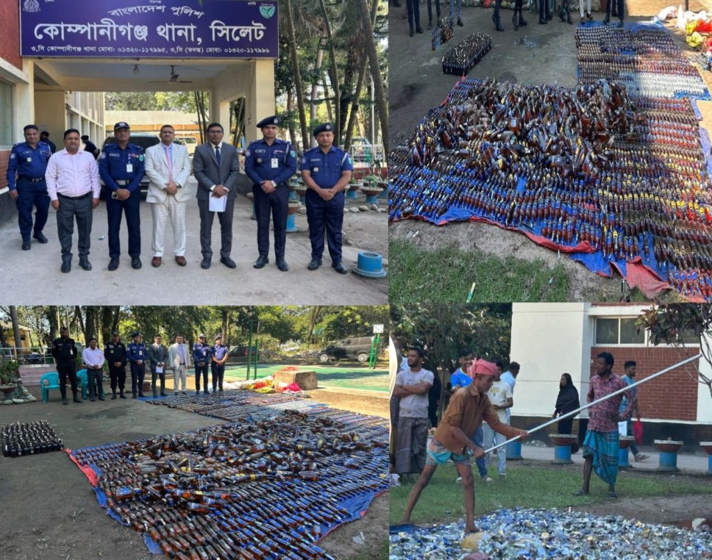 কোম্পানীগঞ্জে বিপুল পরিমাণ মাদক ধ্বংস করলো পুলিশ