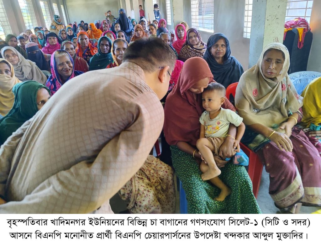 চলমান প্রচারণার অংশ হিসেবে বৃহস্পতিবার (২০ নভেম্বর) সাত সকালে খন্দকার আব্দুল মুক্তাদির ছুটে যান সিলেট সদর উপজেলার খাদিম নগর ইউনিয়নের চা বাগান বেস্টিত এলাকাগুলোতে। এসময় চা শ্রমিকদের আবেগঘণ ভালোবাসায় সিক্ত হন। জবাবে মুক্তাদির বলেন, চা শ্রমিকরা এই সমাজের গুরুত্বপূর্ণ অংশ। তিনি বলেন, শহীদ প্রেসিডেন্ট জিয়াউর রহমান কৃষি খাতের আধুনিকায়নে ব্যাপক অবদান রেখেছেন। চা শিল্প এর বাইরে নয়। তিনি খাল খনন কর্মসূচির মাধ্যমে সেচ ব্যবস্থার উন্নয়ন, জাতীয় বীজ অধ্যাদেশ প্রণয়ন এবং গ্রামীণ ব্যাংকিং ব্যবস্থা সম্প্রসারণের মাধ্যমে কৃষি উৎপাদন বৃদ্ধিতে কাজ করেন, যা সামগ্রিকভাবে দেশের অর্থনৈতিক উন্নয়নে এখনো রোল মডেল হিসেবে আলোচিত।