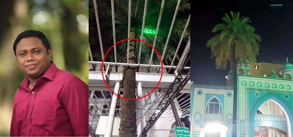 খবরটি শুনে আমি প্রথমে চমকে উঠি। একজন সাংবাদিক তার ফেসবুকে পোস্ট করেছেন, শাহজালাল মাজারের ঐতিহ্যবাহী খেজুর গাছ কেটে ফেলা হয়েছে। এরপর থেকে সামাজিক মাধ্যমে খবরটি দ্রুত ছড়িয়ে পড়ে। কেউ বলছেন, ‘মাজারের ভক্ত তাড়াতে গাছ কাটা হয়েছে।’ ফেসবুক থেকে তথ্য নিয়ে কেউ সংবাদগল্প লিখেছেন, ‘উন্নয়নের নামে ঐতিহ্যবাহী খেজুর গাছ হত্যা।’- এ ঘটনা নিয়ে বিভিন্ন স্থানে আলাপ-টালাপ চলছে। কারো মতে-এ খেজুর গাছ শতবর্ষী, ইয়েমেন দেশ থেকে এসেছে ইত্যাদি। বিষয়টি আমাকে কৌতূহলী করে তোলে। আমি মাজারে ঘুরে আসার সিদ্ধান্ত নিলাম।