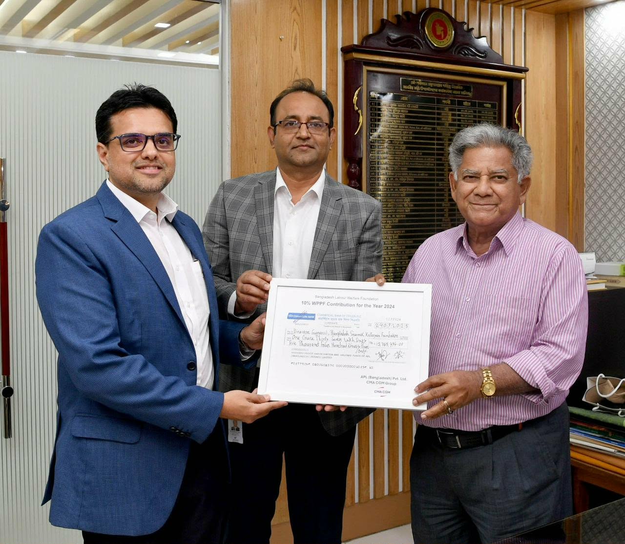 এপিএল (বাংলাদেশ) প্রা: লি: এবং ম্যারিকো বাংলাদেশ লিমিটেড কর্তৃক শ্রমিক কল্যাণ ফাউন্ডেশনে চেক হস্তান্তর