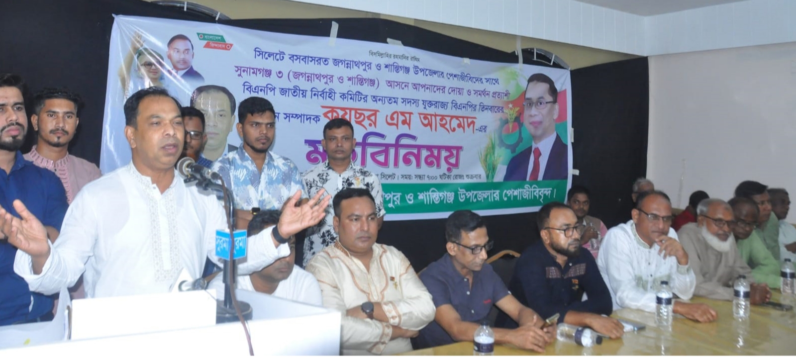 পেশাজীবিদের সাথে মতবিনিময়কালে কয়ছর এম আহমেদ জগন্নাথপুর ও শান্তিগঞ্জবাসীর উন্নয়নে আমি বদ্ধপরিকর