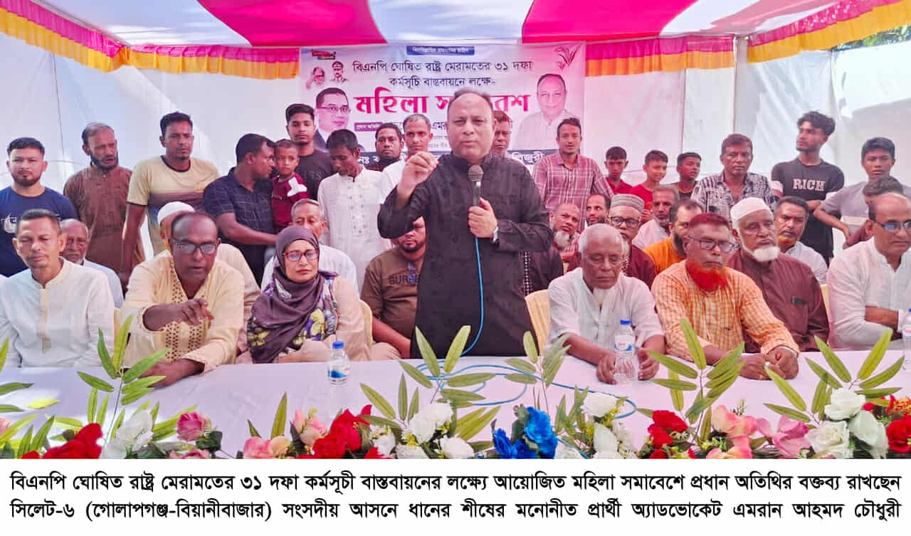 রাষ্ট্র মেরামতের ৩১ দফা কর্মসূচী বাস্তবায়নের লক্ষ্যে মহিলা সমাবেশ সিলেট-৬ (গোলাপগঞ্জ-বিয়ানীবাজার) সংসদীয় আসনে ধানের শীষের মনোনীত প্রার্থী অ্যাডভোকেট এমরান
