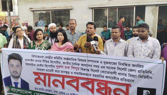 সংবাদ করায় যুক্তরাজ্য প্রবাসী সাংবাদিকের বিরুদ্ধে জিডির প্রতিবাদে মানববন্ধন
