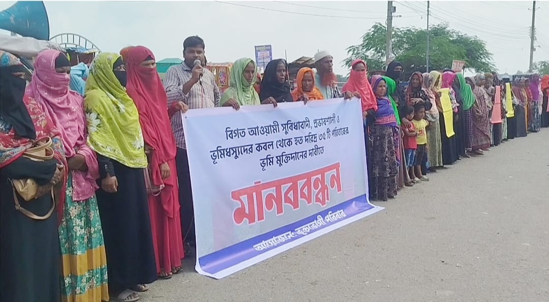 জামালপুরে ভূমি মুক্তিদানের দাবীতে মানববন্ধন ও স্মারকলিপি প্রদান