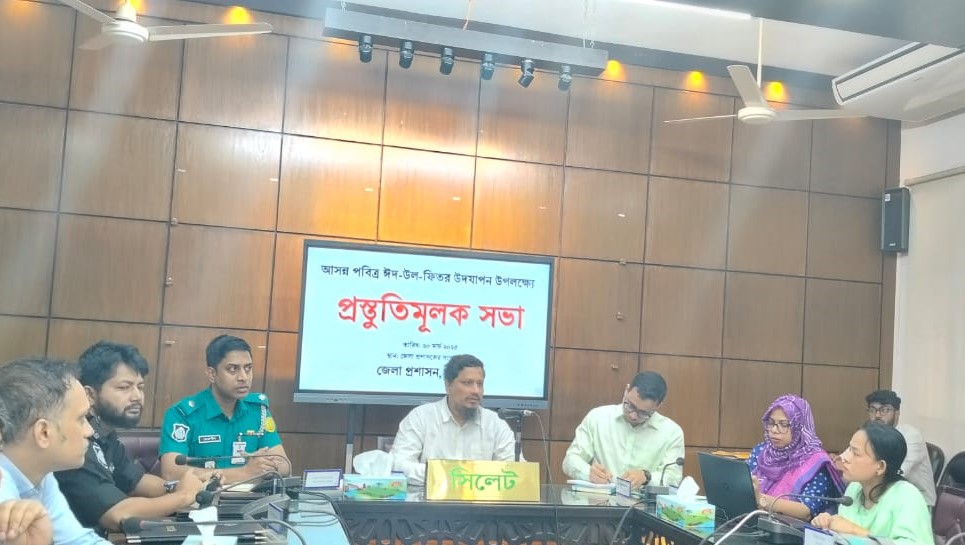 সিলেটে পবিত্র ঈদুল ফিতর উপলক্ষ্যে প্রস্তুতিমূলক সভা অনুষ্ঠিত সিলেটে জেলা প্রশাসকের সম্মেলন কক্ষে পবিত্র ঈদুল ফিতর উদযাপন উপলক্ষে আজ ২০