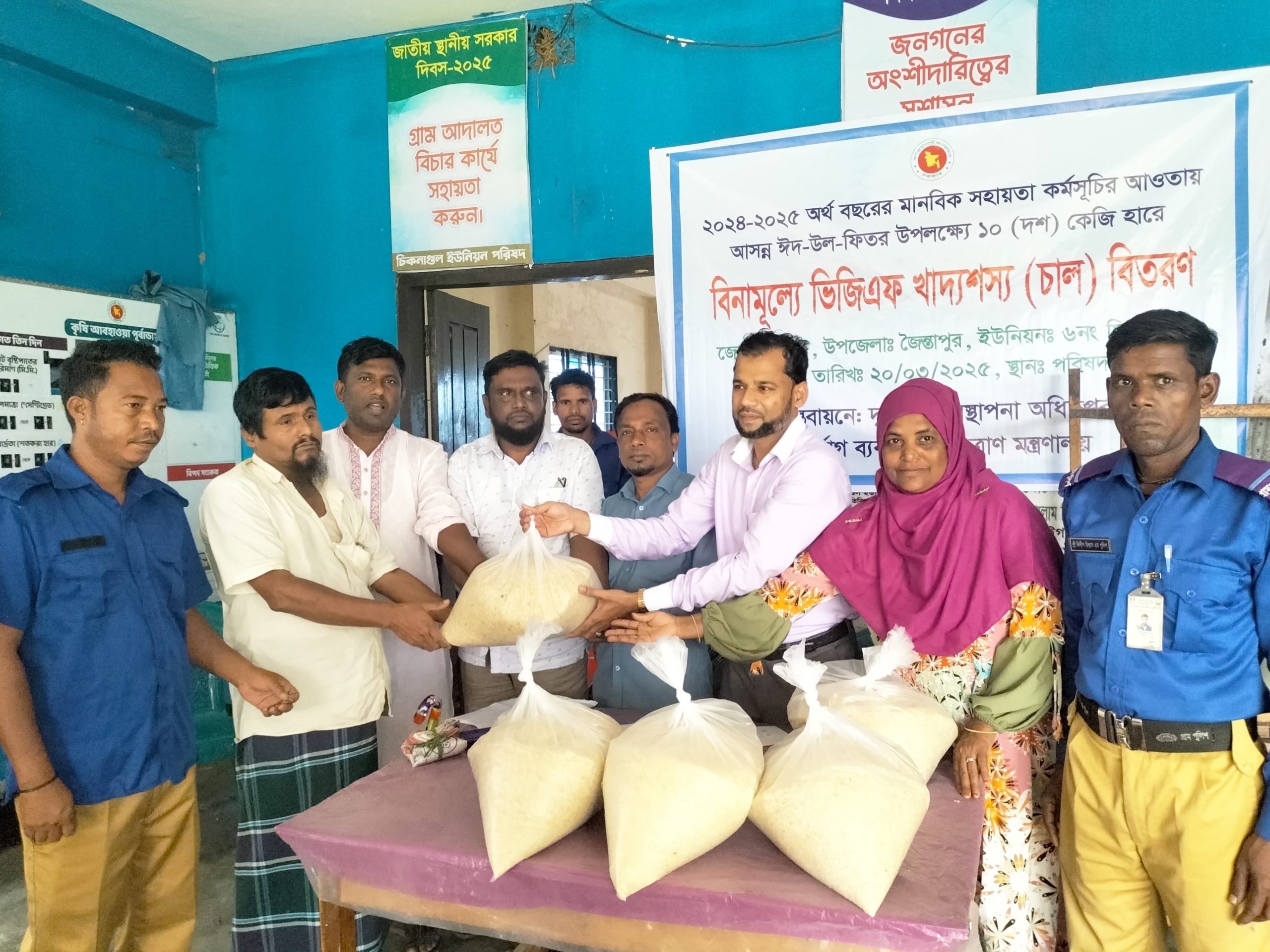 নিউজ ডেস্ক:: পবিত্র ঈদুল-ফিতর উপলক্ষে সিলেটের জৈন্তাপুর উপজেলার চিকনাগুল ইউনিয়নে সরকারের বিশেষ বরাদ্দ বিনামূল্যে ভিজিএফ খাদ্যশস্য (চাল) ইউনিয়নের ৭০৭টি পরিবারের