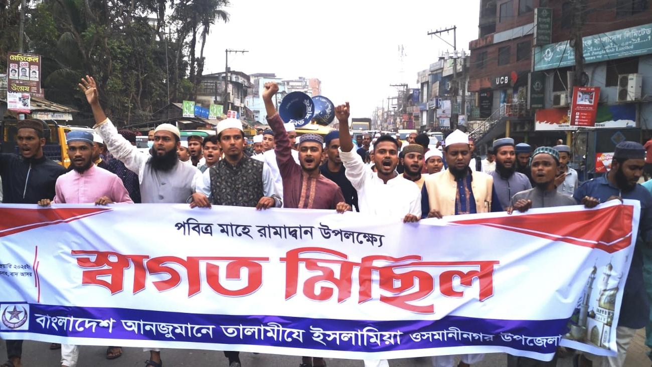 ওসমানীনগর প্রতিনিধি:: পবিত্র রমজান মাস আগমন উপলক্ষে সিলেটের ওসমানীনগরে আনজুমানে তালামীযে ইসলামিয়ার স্বাগত মিছিল ও পথসভা অনুষ্ঠিত হয়েছে। গতকাল শুক্রবার