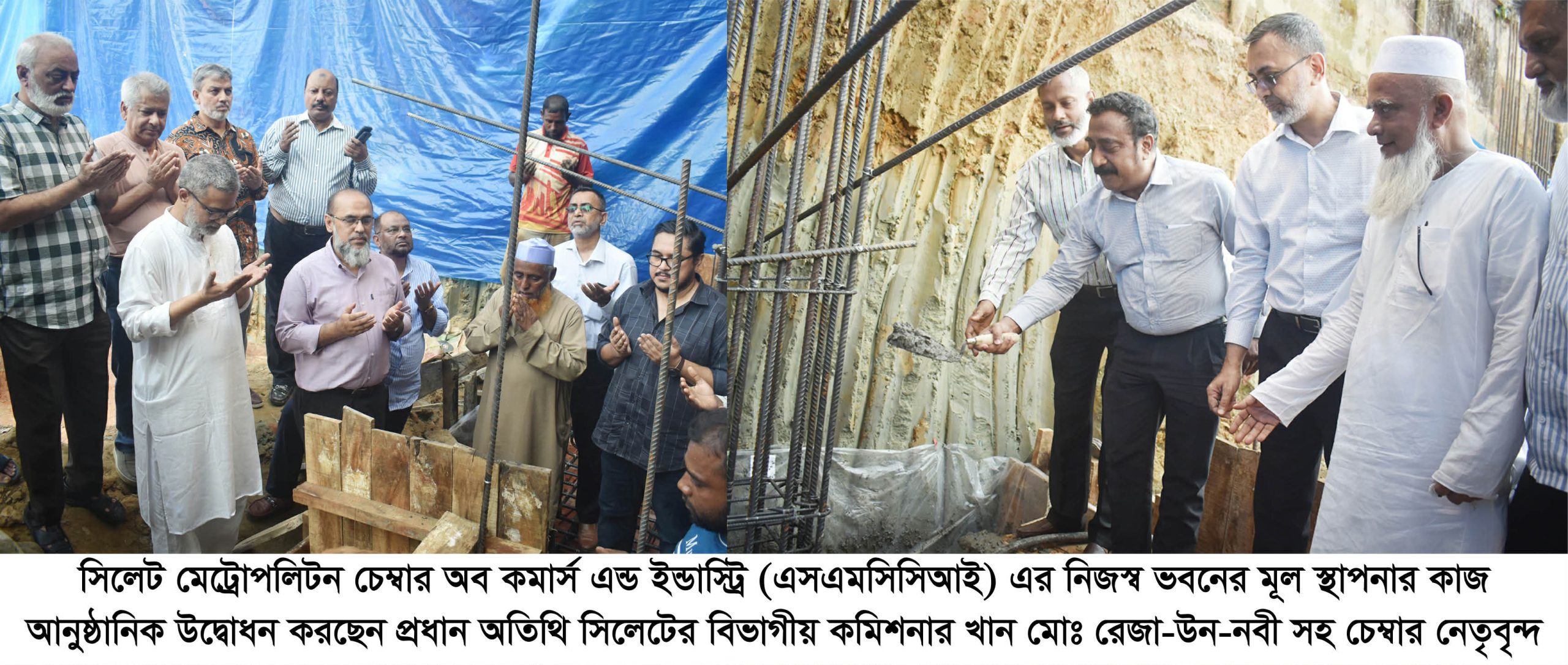 সিলেট মেট্রোপলিটন চেম্বার অব কমার্স এন্ড ইন্ডাস্ট্রি (এসএমসিসিআই) এর নিজস্ব ভবনের মূল স্থাপনার কাজ আনুষ্ঠানিক উদ্বোধন করা হয়েছে। সোমবার (২৭