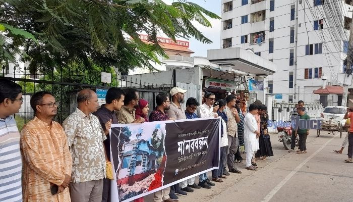 সিলেটের ঐতিহাসিক মিনিস্টার বাড়ি রক্ষায় মানববন্ধন অনুষ্ঠিত