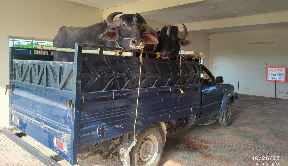 তামাবিল হাইওয়ে থানা পুলিশের অভিযানে ভারতীয় মহিষসহ ডিআই পিকআপ জব্দ-আ ট ক ১
