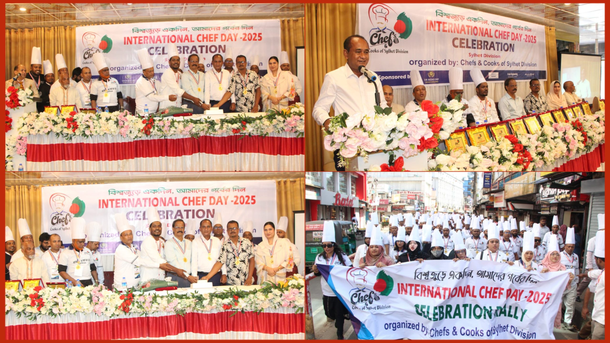 সিলেটে উৎসব আনন্দে শেফ দিবস পালন সিলেটে উৎসব আনন্দে দিনভর নানা আয়োজনের মধ্য দিয়ে পালিত হয়েছে ইন্টারন্যাশনাল শেফ ডে ২০২৫।
