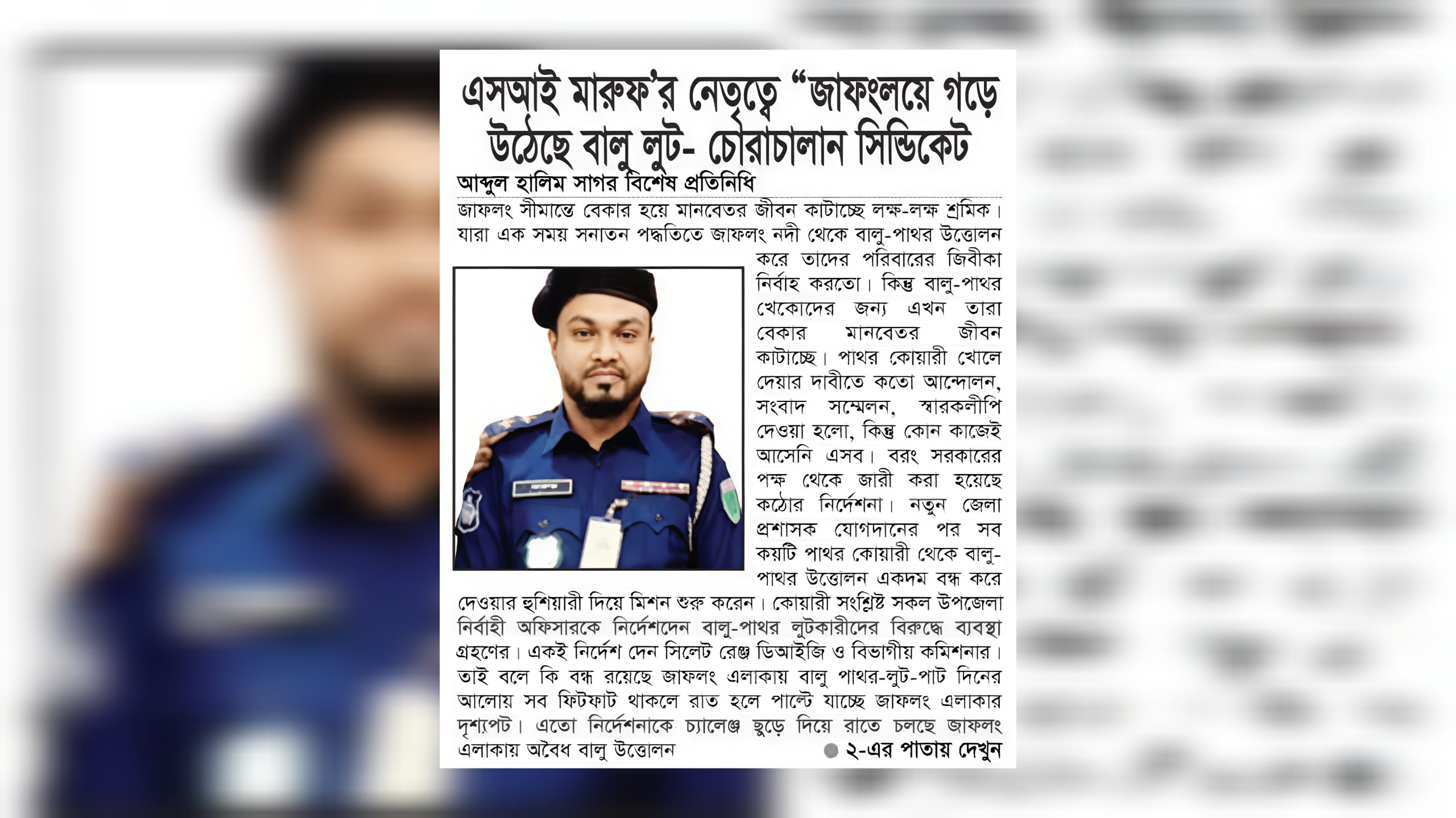 এসআই মারুফ’র নেতৃত্বে “জাফংলয়ে গড়ে উঠেছে বালু লুট- চৌরাচালান সিন্ডিকেট