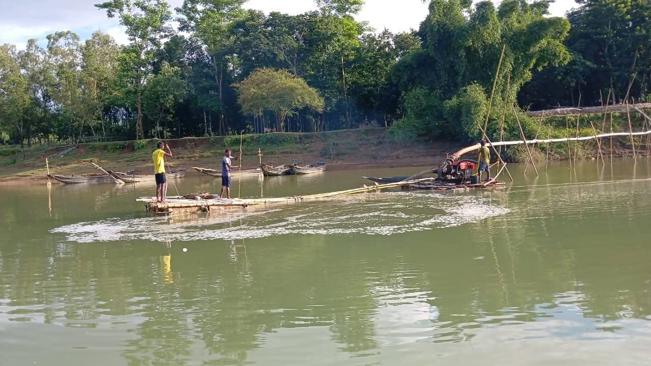 জৈন্তাপুরে বড়গাং নদীতে পরিবেশবিধ্বংসী বোমা মেশিন দিয়ে বালু পাথর উত্তোলন