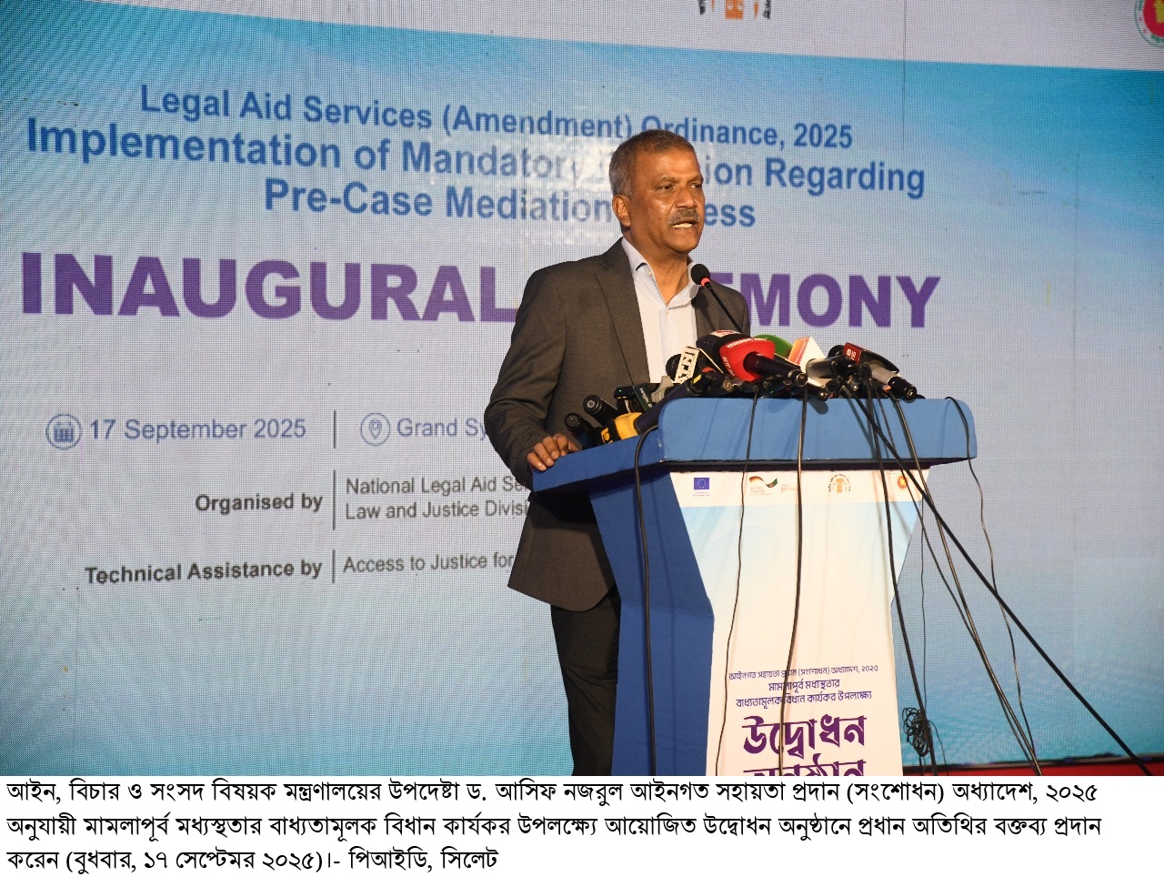 মামলাপূর্ব বাধ্যতামূলক মধ্যস্থতার বিধান দরিদ্রদের ন্যায়বিচার পাওয়ার অভাবনীয় সুযোগ সৃষ্টি করেছে: আইন উপদেষ্টা